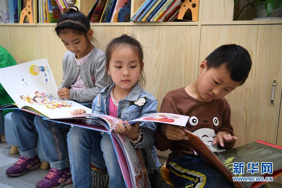 4月20日,小读者在桐城市小金婴共享绘本馆内阅读。新华社记者 刘军喜 摄
