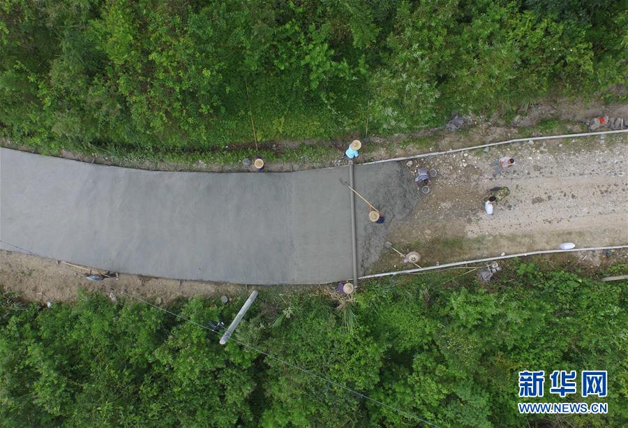 村民在修建进村公路(2015年7月22日无人机拍摄)。新华社记者 黄孝邦 摄