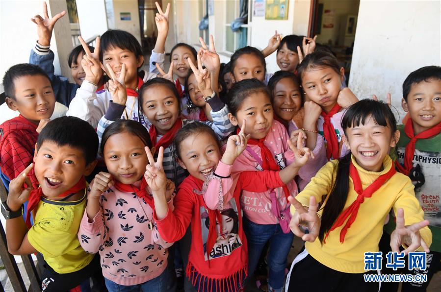 云南省景洪市基诺山基诺族乡民族小学学生在合影(2018年11月20日摄)。