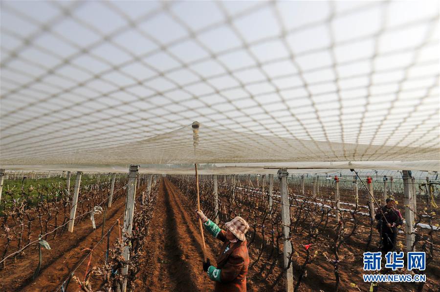 4月21日,河北唐山遵化市团瓢庄乡朱官屯村村民在葡萄园里劳作。新华社发(刘满仓 摄)