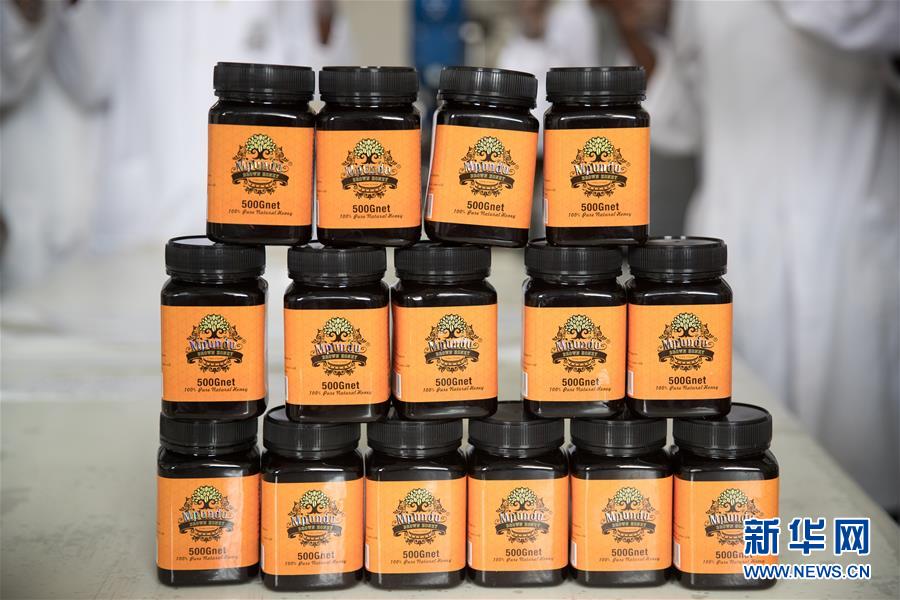 这是2018年11月2日在赞比亚中央省省会卡布韦市拍摄的睦朋得野生蜂蜜有限公司产品。