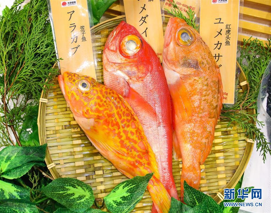 这是2018年11月7日在上海进博会食品及农产品展区拍摄的来自日本的水产。