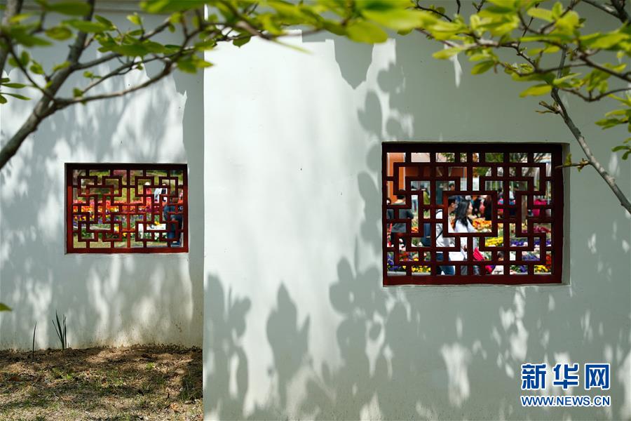 这是2019年4月20日在韩国顺天湾国家园林拍摄的中国宁波园一角。位于顺天湾国家园林世界园林展区的中国宁波园以梁山伯与祝英台的凄美爱情故事为主题,利用水、桥、石头和树木等为游客呈现极具中国特色的园林景观。 新华社记者王婧嫱摄