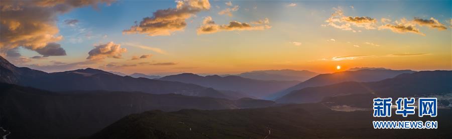 在玉龙雪山风景区拍摄的日出美景(4月21日无人机拍摄)。玉龙雪山位于云南省丽江市西北部,主峰海拔5596米,山顶终年积雪,山腰常有云雾,远远望去,宛如一条玉龙腾空而得名。 新华社记者 胡超 摄