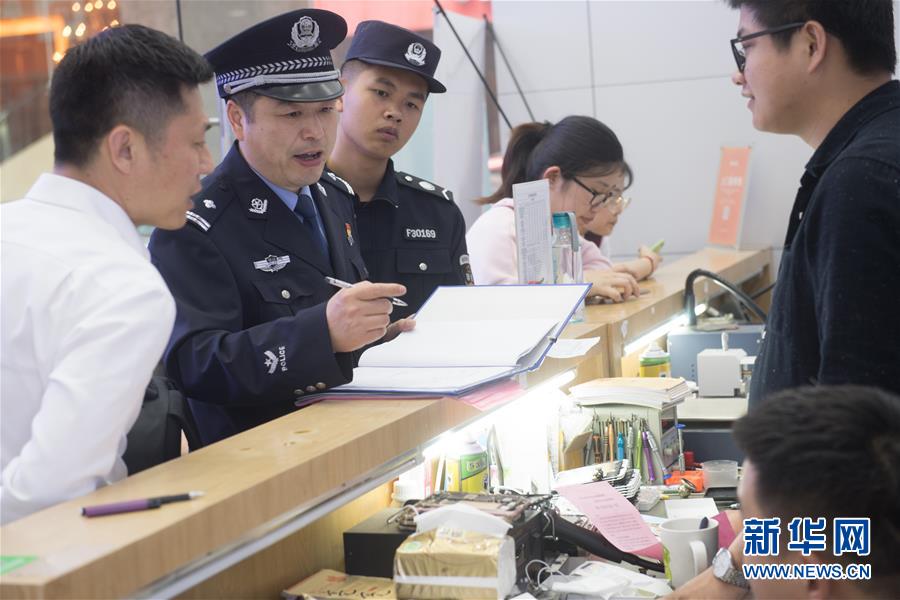 4月22日,“邻里中心式”警务站工作人员上门采集商圈从业人员信息。新华社记者 翁忻旸 摄