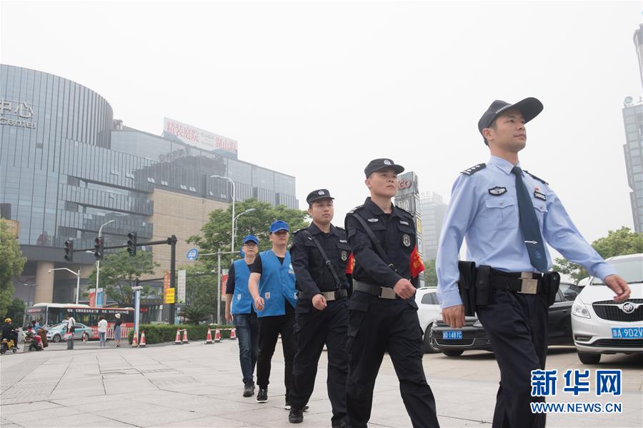 4月22日,“邻里中心式”警务站工作人员和志愿者开展商圈警民联巡。新华社记者 翁忻旸 摄
