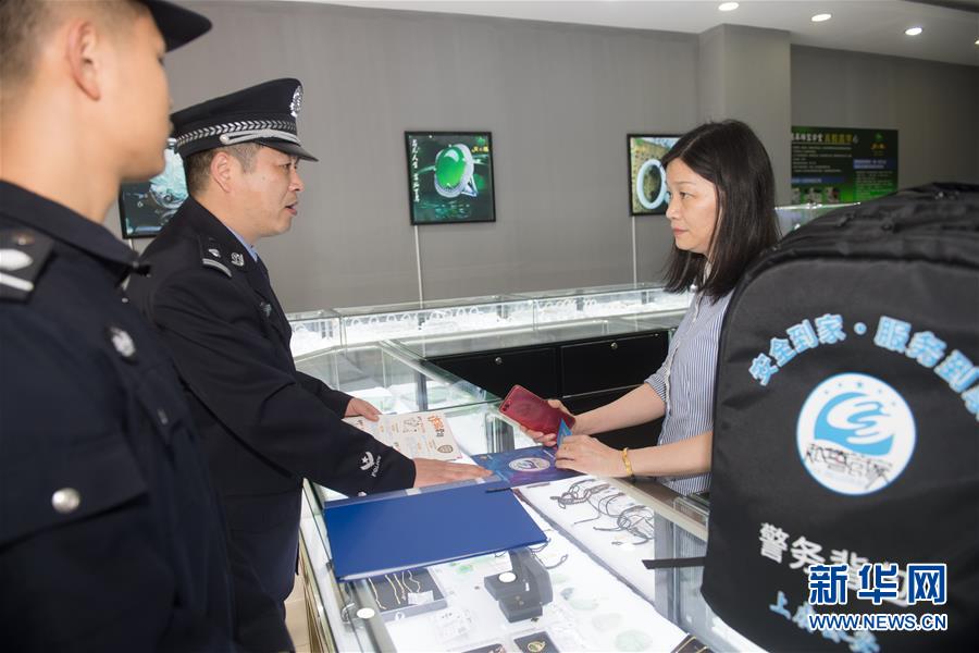4月22日,“邻里中心式”警务站工作人员上门对商圈从业人员进行反诈宣传。新华社记者 翁忻旸 摄