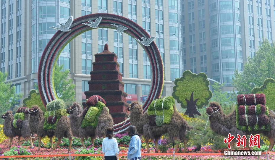 “一带一路”国际合作高峰论坛主题花坛亮相北京街头