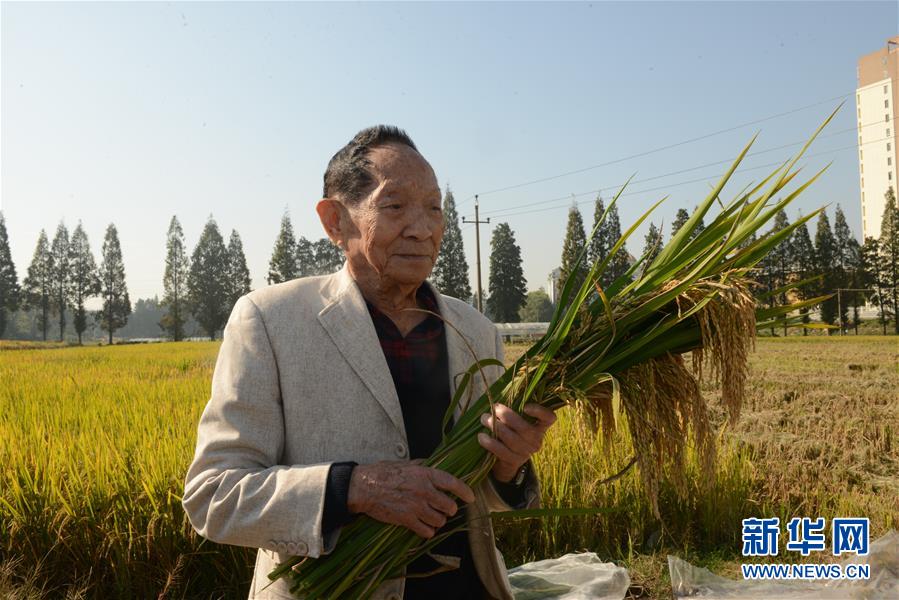 2018年10月30日,袁隆平在位于湖南长沙的第三代杂交水稻小区测产。 新华社发