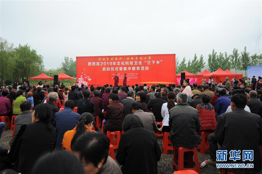 4月23日,文艺志愿者为村民表演节目。 当日,安徽省肥西县2019年文化科技卫生“三下乡”活动在铭传乡启明社区举行。来自全县文化、科技、卫生等部门的志愿者为村民带来一场文艺演出,并开展义诊、科普等活动。 新华社记者 任鹏飞 摄