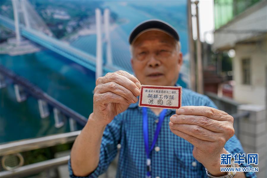 重庆白沙沱长江大桥的建设者孙贻荪老人展示他保存的架梁工作证(4月23日摄)。 4月23日下午5点40分,随着重庆白沙沱长江大桥通行的最后一列客运列车顺利通过,这座“服役”了59年的重庆首座长江大桥进入“退役”倒计时。4月24日后,所有列车将改线经距白沙沱长江大桥约100米的新白沙沱长江特大桥通行,新桥“接力”老桥,运输能力将得到大幅提升。 白沙沱长江大桥于1958年开工,1960年通过首趟列车,是继武汉长江大桥之后的第二座长江大桥。 新华社记者 刘潺 摄
