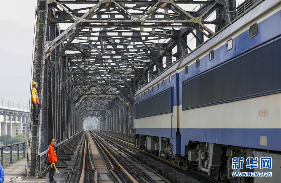 中国铁路成都局有限公司重庆工务段的巡检班组在白沙沱长江大桥上等待机车通过后继续作业(4月23日摄)。 4月23日下午5点40分,随着重庆白沙沱长江大桥通行的最后一列客运列车顺利通过,这座“服役”了59年的重庆首座长江大桥进入“退役”倒计时。4月24日后,所有列车将改线经距白沙沱长江大桥约100米的新白沙沱长江特大桥通行,新桥“接力”老桥,运输能力将得到大幅提升。 白沙沱长江大桥于1958年开工,1960年通过首趟列车,是继武汉长江大桥之后的第二座长江大桥。 新华社记者 刘潺 摄