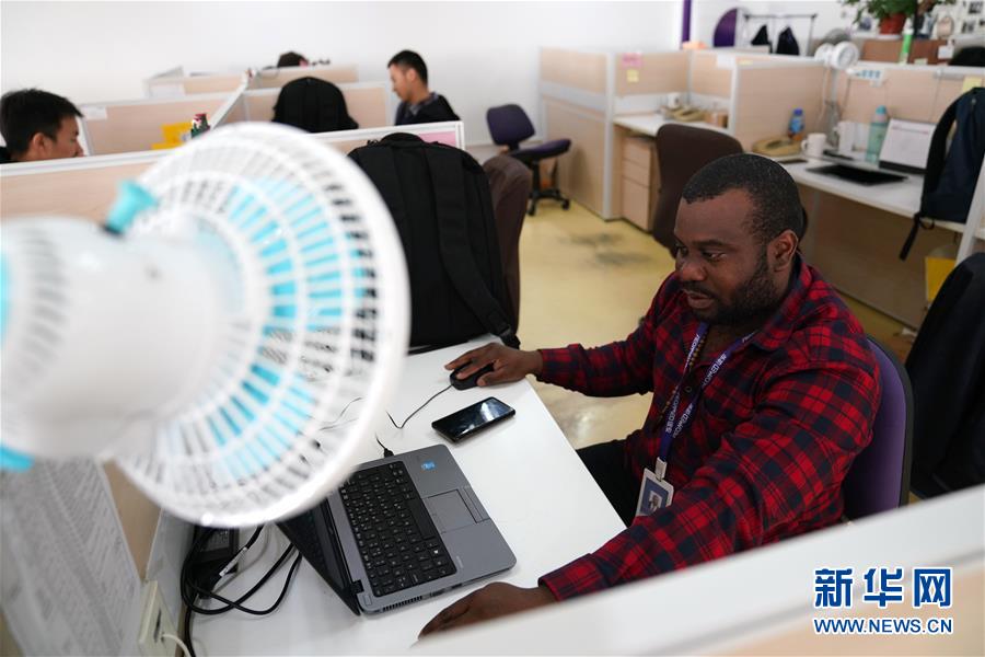 4月4日,来自赤道几内亚的留学生安吉在他实习的北京谊安医疗系统股份有限公司的办公室内。安吉2013年来到中国,目前是北京第二外国语学院经济与国际贸易专业本科生,2018年他进入谊安医疗实习,担任实习销售经理,参与公司在拉丁美洲地区的销售。“我来中国学到了很多东西,刚来中国的时候,我不会说中文,不过现在我的中文已经说得不错了。因为我现在是本科生,所以我还想继续读书。” 安吉正在申请新的奖学金,想继续在中国学习商务管理,希望能够继续留在中国。 新华社记者鞠焕宗摄
