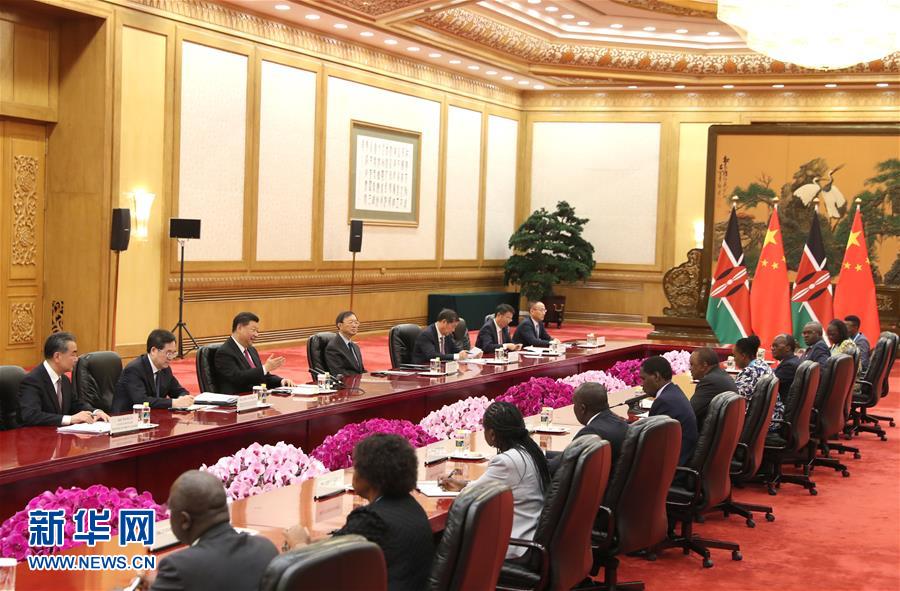 4月25日,国家主席习近平在北京人民大会堂会见肯尼亚总统肯雅塔。 新华社记者 鞠鹏 摄
