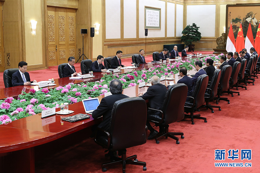 4月25日,国家主席习近平在北京人民大会堂会见印度尼西亚副总统卡拉。 新华社记者 王晔 摄