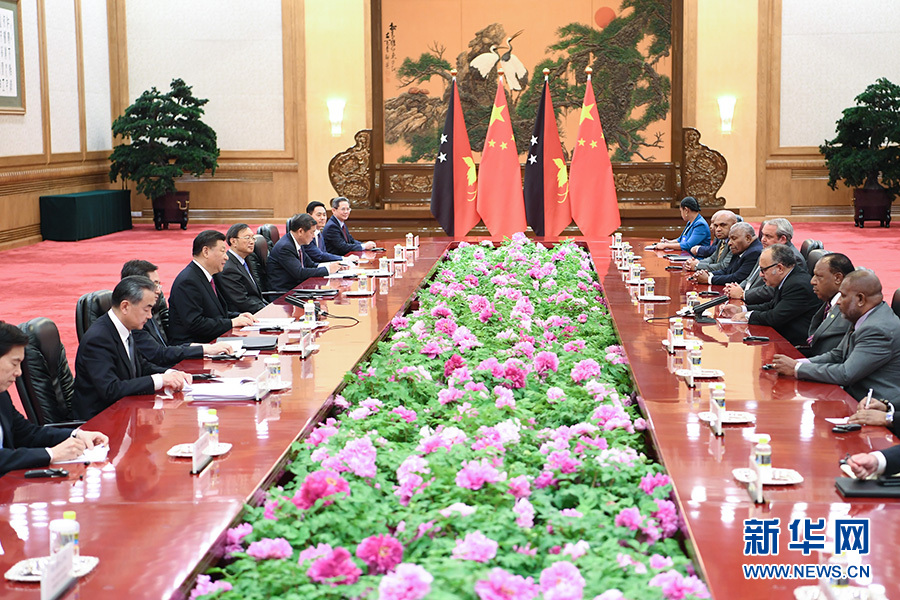 4月25日,国家主席习近平在北京人民大会堂会见巴布亚新几内亚总理奥尼尔。 新华社记者 燕雁 摄