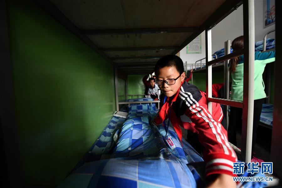 这是学生在宿舍里整理床铺(4月18日摄)。 新华社记者詹彦摄