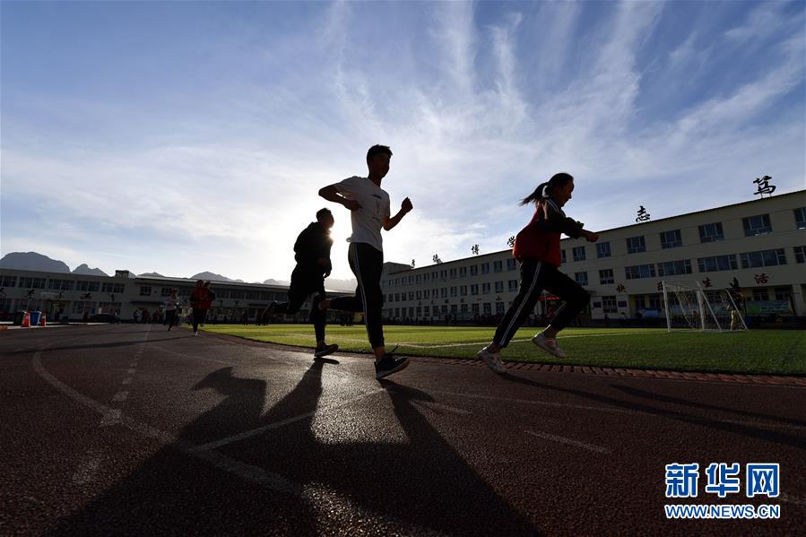 这是学生们在跑步进行体能训练(4月16日摄)。 新华社记者詹彦摄