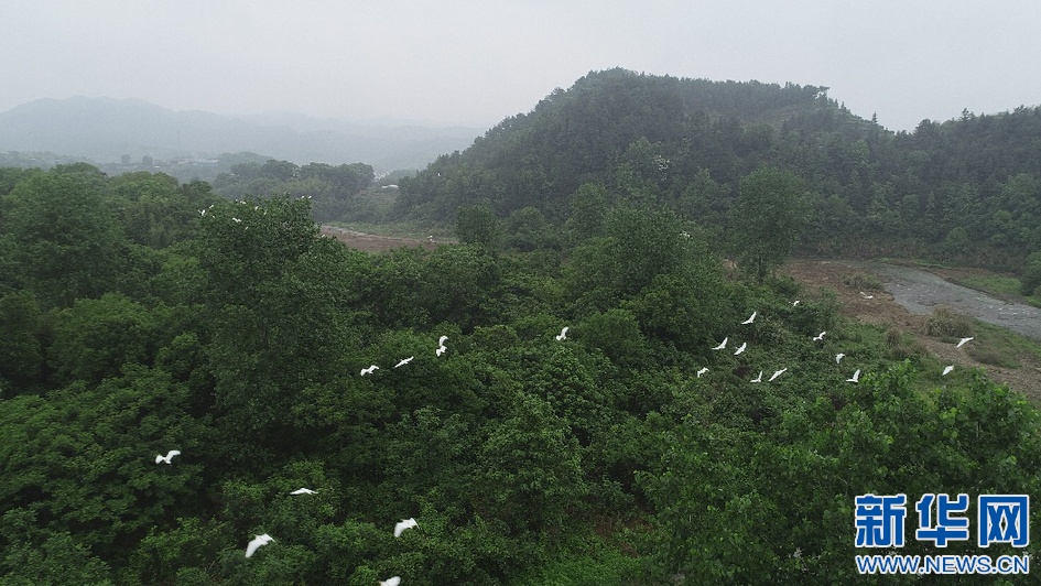鹭鸟在山林中翩跹飞舞。新华网发 李启峰摄