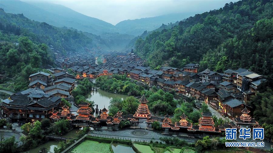 这是贵州省黔东南苗族侗族自治州黎平县肇兴侗寨(4月14日无人机拍摄)。 新华社记者 欧东衢 摄