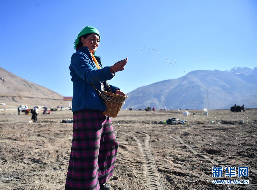4月26日,日喀则市聂拉木县岗嘎村村民在播种青稞。 新华社记者 晋美多吉 摄
