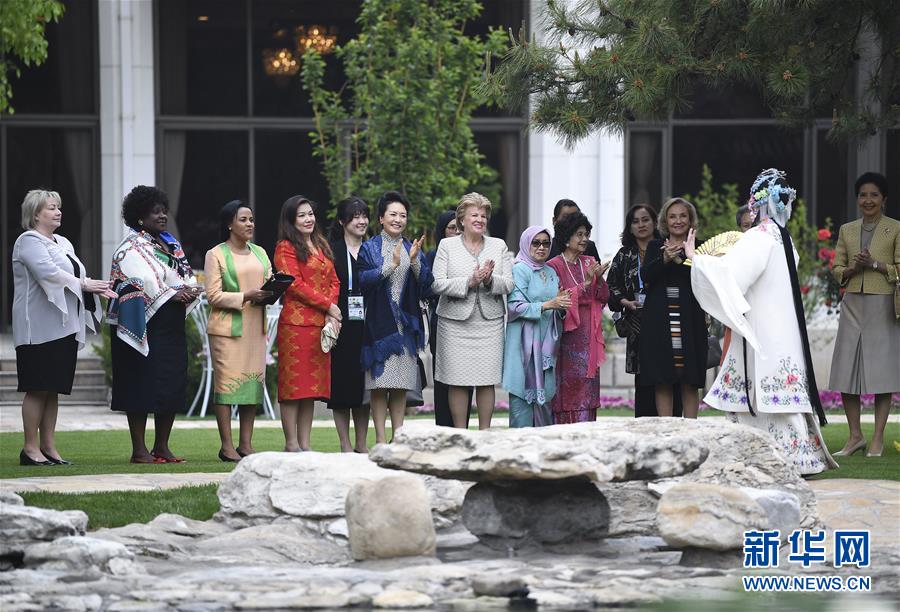 4月27日,国家主席习近平夫人彭丽媛在北京钓鱼台国宾馆邀请出席第二届“一带一路”国际合作高峰论坛的外方领导人配偶欣赏中国昆曲和京剧表演。 新华社记者燕雁摄