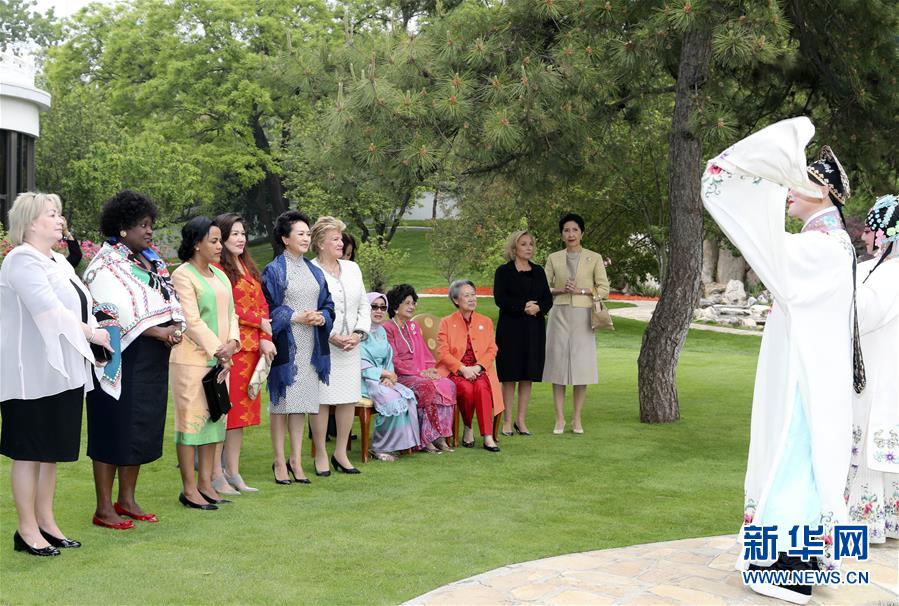 4月27日,国家主席习近平夫人彭丽媛在北京钓鱼台国宾馆邀请出席第二届“一带一路”国际合作高峰论坛的外方领导人配偶欣赏中国昆曲和京剧表演。 新华社记者丁林摄