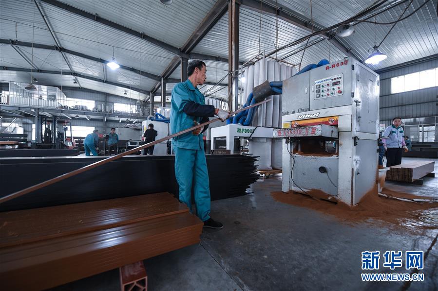 4月27日,东林镇一家企业的工人在加工一批出口希腊的环保建筑材料。 近年来,浙江省湖州市东林镇政府积极引导企业转型升级,用政策支持和奖励激励机制,让包括矿山企业、线缆企业、建筑材料企业等多种传统企业从原辅材料、生产工艺及排放等多个环节进行环保升级改造,既减少了污染排放也让企业生产出符合环保标准并受市场欢迎的新产品,助推企业环保升级。 新华社记者 徐昱 摄