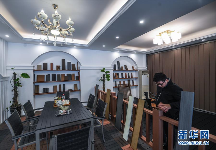 4月27日,东林镇一家生产新材料公司的展厅内,顾客在选购用塑木环保原料做成的建筑装饰材料。 近年来,浙江省湖州市东林镇政府积极引导企业转型升级,用政策支持和奖励激励机制,让包括矿山企业、线缆企业、建筑材料企业等多种传统企业从原辅材料、生产工艺及排放等多个环节进行环保升级改造,既减少了污染排放也让企业生产出符合环保标准并受市场欢迎的新产品,助推企业环保升级。 新华社记者 徐昱 摄