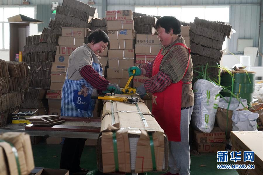 在耿车镇大众村一家家具厂,工人对产品进行包装(4月16日摄)。 江苏省宿迁市耿车镇,曾因“玩转”废旧塑料加工创造的“耿车模式”闻名全国。然而,以牺牲环境谋求发展让耿车陷入“垃圾围城”困境。 近年来,耿车以壮士断腕的决心去污减塑,倒逼绿色转型,发展家具电商、多肉绿植等绿色产业,全力打造“创业梦工厂”“生态示范镇”,一个绿色、崭新的耿车出现在苏北大地。 新华社记者 季春鹏 摄