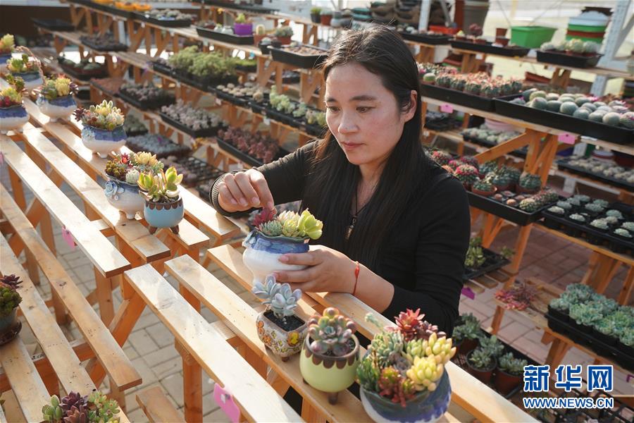 在耿车一家生物科技公司,负责人李平在整理多肉植物(4月17日摄)。 江苏省宿迁市耿车镇,曾因“玩转”废旧塑料加工创造的“耿车模式”闻名全国。然而,以牺牲环境谋求发展让耿车陷入“垃圾围城”困境。 近年来,耿车以壮士断腕的决心去污减塑,倒逼绿色转型,发展家具电商、多肉绿植等绿色产业,全力打造“创业梦工厂”“生态示范镇”,一个绿色、崭新的耿车出现在苏北大地。 新华社记者 季春鹏 摄