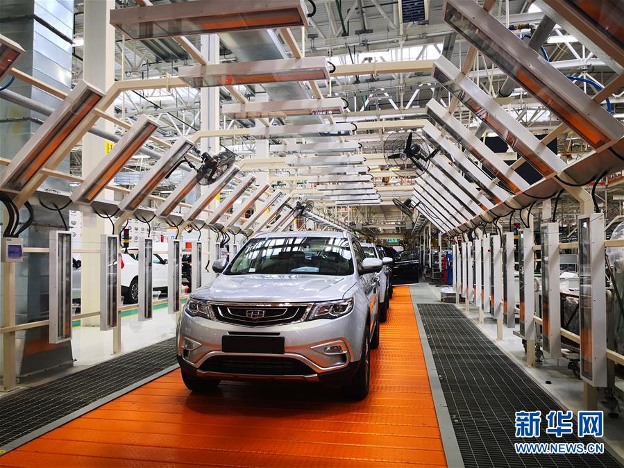 这是2018年12月1日在白俄罗斯首都明斯克东北方向50公里处的白俄罗斯吉利全散件汽车制造厂总装车间拍摄的准备下线的汽车。新华社记者张若玄摄