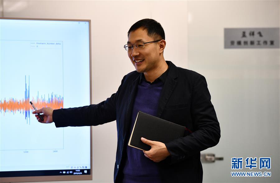 在国家超级计算天津中心,孟祥飞在分析数据信息(4月24日摄)。新华社记者李然摄