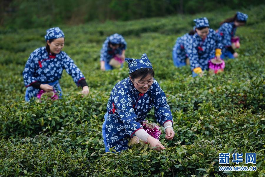 4月28日,在江苏省盱眙县黄花塘镇雨山茶园,人们在茶田里体验采茶。近日,随着气温回升,江苏省盱眙县黄花塘镇“扶贫茶园”里的雨山茶进入集中采摘期。江苏省盱眙县黄花塘镇雨山茶种植历史悠久,目前总种植面积约1440亩。近年来,当地政府把茶产业作为精准脱贫的战略性产业发展,并通过农事体验等形式,把农业生产和旅游休闲有机结合起来,带动当地贫困居民增收,助力乡村振兴。 新华社记者 李响 摄
