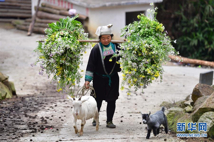在黔桂乌英苗寨,村民劳作归来(3月26日摄)。 新华社记者 黄孝邦 摄
