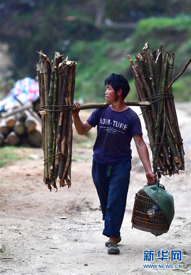 在黔桂乌英苗寨,村民劳作归来(4月20日摄)。 新华社记者 黄孝邦 摄
