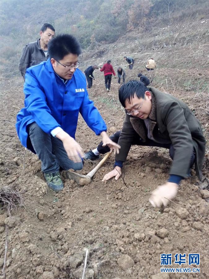 在湖北省郧西县上津镇吴家沟村,翁新强(左)在田间与种植户交流五味子栽种技术(资料照片)。 新华社发