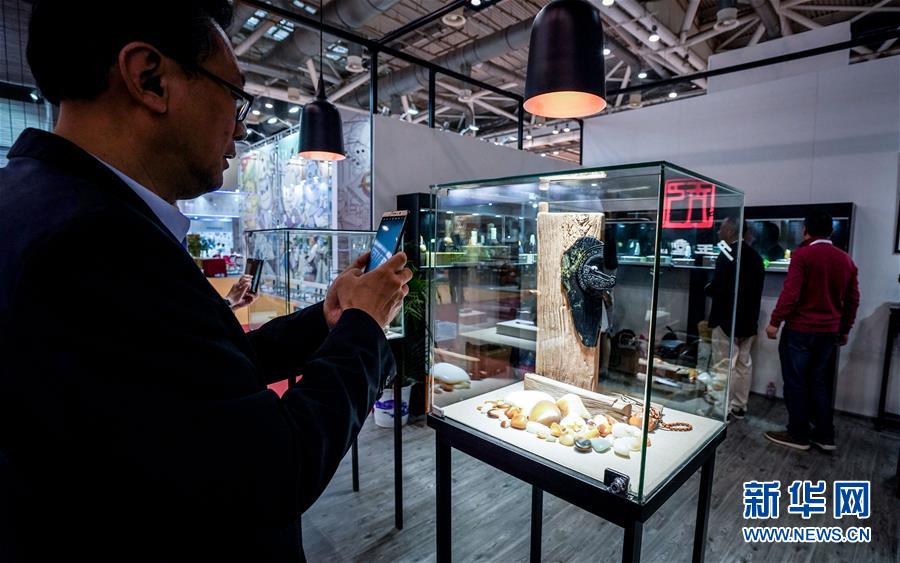 观众在欣赏卢伟、林珉在第十一届全国“子冈杯”玉石雕作品展上展出的往届获奖作品(4月19日摄)。 在4月23日江苏省苏州市举办的第十一届中国“子冈杯”玉石雕作品展颁奖仪式上,由苏州玉雕师卢伟、林珉设计创作的碧玉作品《在梅边》获得金奖。 来自苏州工艺美术行业的卢伟、林珉先后从事过工艺扇、动漫画的设计创作,后来,二人成立玉雕工作室,从事玉器设计雕刻创作。他们继承苏作玉雕精细雅洁的传统风格,在设计风格、内容与技术技巧上寻求创新突破,设计创作的作品更具时代感,给人以耳目一新的感觉。 新华社记者 杨磊 摄