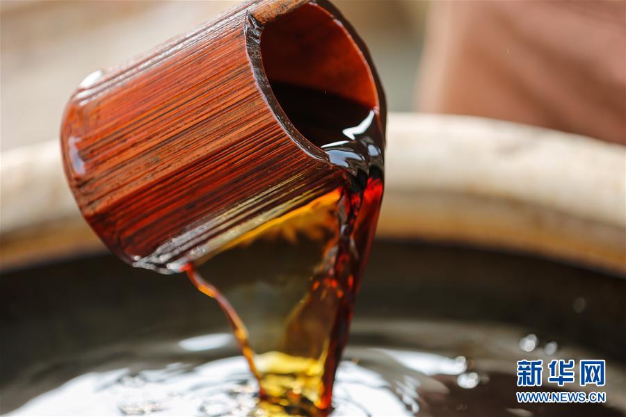 这是4月29日拍摄的吴华清古法酿制的酱油。 新华社发(赖进财摄)