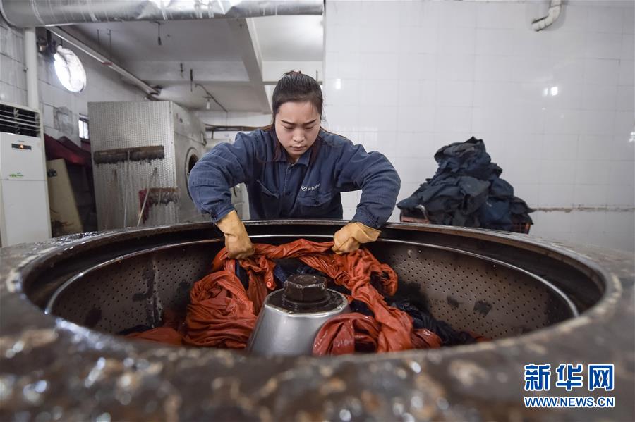2016年1月26日,在位于安徽宿州的祁东煤矿洗衣房内,“90后”洗衣工张静将衣服放入脱水机里。张静2013年进入皖北煤电集团祁东煤矿从事洗衣工作。尽管工作辛苦,但张静始终坚守在后勤一线,用细心和贴心服务煤矿工人。 青年兴则国家兴,青年强则国家强。在我国广袤的土地上,激扬着热情与活力的青年们正以蓬勃向上之力,在平凡的岗位中挥洒着汗水,在自我奉献中展现人生价值。 新华社记者 张端摄