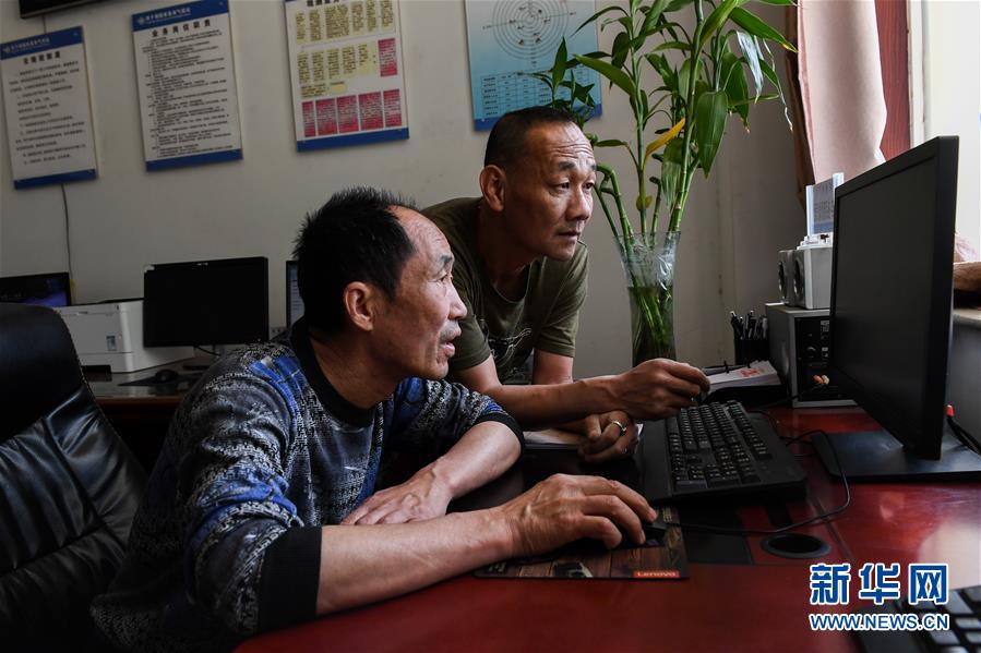 在拐子湖气象站值班室,许延强(右)和同事张勇一起观看实时监测数据(4月28日摄)。 地处内蒙古自治区额济纳旗的拐子湖气象站,是我国为数不多的沙漠腹地气象观察站之一,条件十分艰苦,方圆几十公里内常住人口不足20人。 作为拐子湖气象站唯一的高级工程师,今年52岁的许延强在这里工作近10年。恶劣的环境,让业务过硬的他同时成了大棚种植、家禽饲养、气象站绿化、设备维修等多方面的能手。在拐子湖气象站的10个春节假期里,许延强仅回过一次家。更多的节假日期间,他常常坚守在岗位上,和同事们一起默默奉献。 新华社记者 刘磊 摄