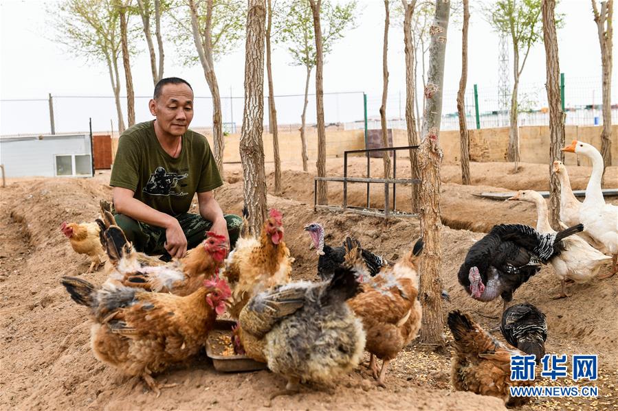 在拐子湖气象站院内,许延强为家禽喂食(4月27日摄)。 地处内蒙古自治区额济纳旗的拐子湖气象站,是我国为数不多的沙漠腹地气象观察站之一,条件十分艰苦,方圆几十公里内常住人口不足20人。 作为拐子湖气象站唯一的高级工程师,今年52岁的许延强在这里工作近10年。恶劣的环境,让业务过硬的他同时成了大棚种植、家禽饲养、气象站绿化、设备维修等多方面的能手。在拐子湖气象站的10个春节假期里,许延强仅回过一次家。更多的节假日期间,他常常坚守在岗位上,和同事们一起默默奉献。 新华社记者 刘磊 摄