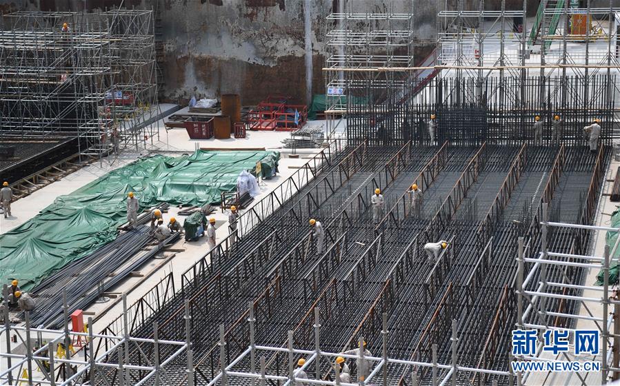这是深中通道西人工岛钢筋捆扎施工现场(4月26日摄)。 新华社记者 邓华 摄