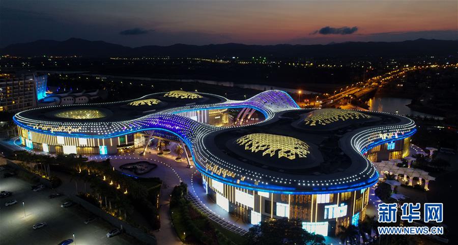 位于海南省三亚市海棠湾的三亚国际免税城夜景(4月13日无人机拍摄)。 近日发布的海南省一季度经济数据显示,房地产开发投资和房屋销售面积同比大幅下降,服务业增加值占GDP比重同比提高。 一降一升,凸显海南经济转型和高质量发展的步伐稳健。去年以来,肩负打造中国改革开放新标杆重要使命的海南,努力摆脱房地产路径依赖,加快重构现代产业体系,探索高质量发展的“海南实践”。 新华社记者 杨冠宇 摄