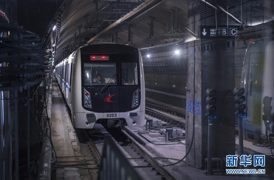 晚上9点40分,长春市地铁2号的“末班地铁”驶入解放大路站站台(4月28日摄)。 新华社记者许畅摄