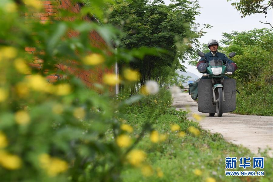 在安徽省巢湖市散兵镇山口村,郑爱军骑行在投递邮件的路上(4月30日摄)。 今年51岁的郑爱军是安徽省巢湖市散兵镇的一名邮递员,他在散兵镇的山区里做投递工作已经36个年头了。 郑爱军承担着全镇5个行政村的投递任务。他每天早晨需要对信件、报纸和包裹进行分拣,之后骑车载着邮包翻山越岭、走村串户,将邮件送到村民手中。 除了做好本职工作,郑爱军还帮行动不便的留守老人捎带生活用品,为村里的孤儿捐款,被乡亲们称为“贴心人”。 风里来雨里去,郑爱军怀着爱心坚守在山区邮路上。 新华社记者 张端 摄
