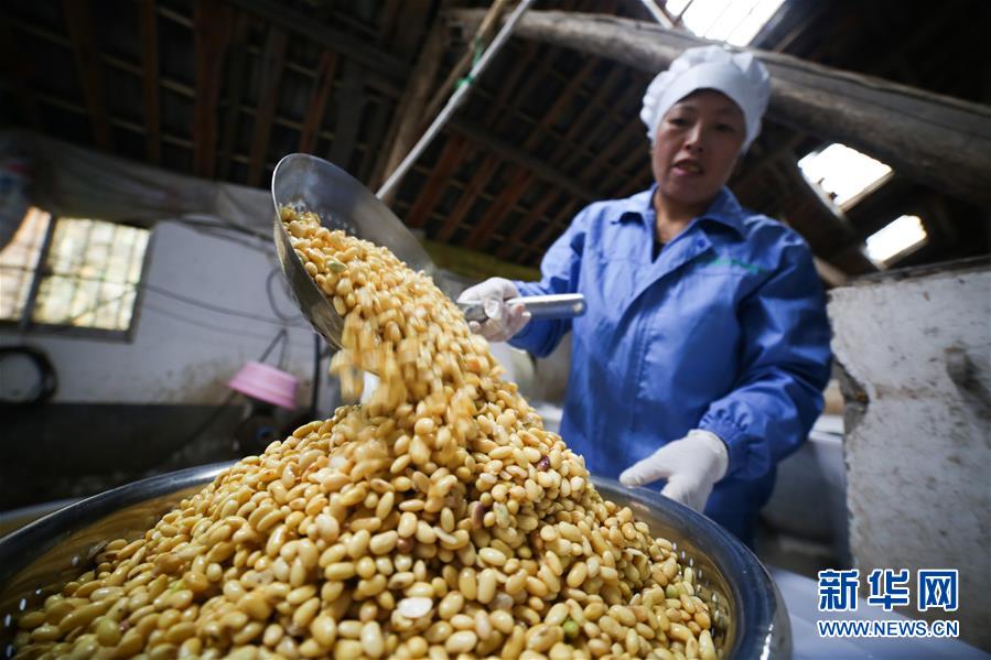 4月30日,在贵州省毕节市大方县对江镇龙场村大山深处的豆香源食品厂,村民清洗泡好的黄豆。 1983年出生在贵州省毕节市大方县对江镇龙场村的胡从锋,从小就喜欢吃家乡的豆干。2010年大学毕业后,胡从锋带着“让更多人能品尝到美味豆干”的梦想回到家乡,开始从事本地豆干的零售生意,由于他销售的豆干质地好,做人诚实守信,豆干的销量一度达到月售30余万片。为了能保证所售豆干的品质, 2017年胡从锋筹资30余万元在龙场村大山里建起了食品厂,坚持只用本地黄豆作为生产的原材料。他的食品厂生产的豆干味道纯正、口感细嫩,产品不光畅销省内外,还远销缅甸、泰国等地。 如今,食品厂日产豆干超过10万片,年产值达130万元以上,带动当地黄豆种植近千亩。在胡从锋看来,家乡的美味不能藏在大山里,要让豆干走出大山,为乡亲们带来更好的收益。下一步,胡从锋计划扩大生产规模,带领更多乡亲加入豆干产业,也让更多的人品尝到家乡美味。 新华社发(罗大富 摄)
