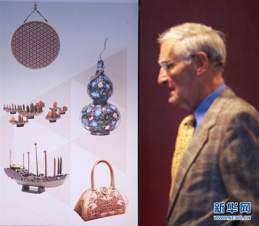 4月30日,在法国巴黎中国文化中心,一名参观者走过展览海报。新华社记者 高静 摄