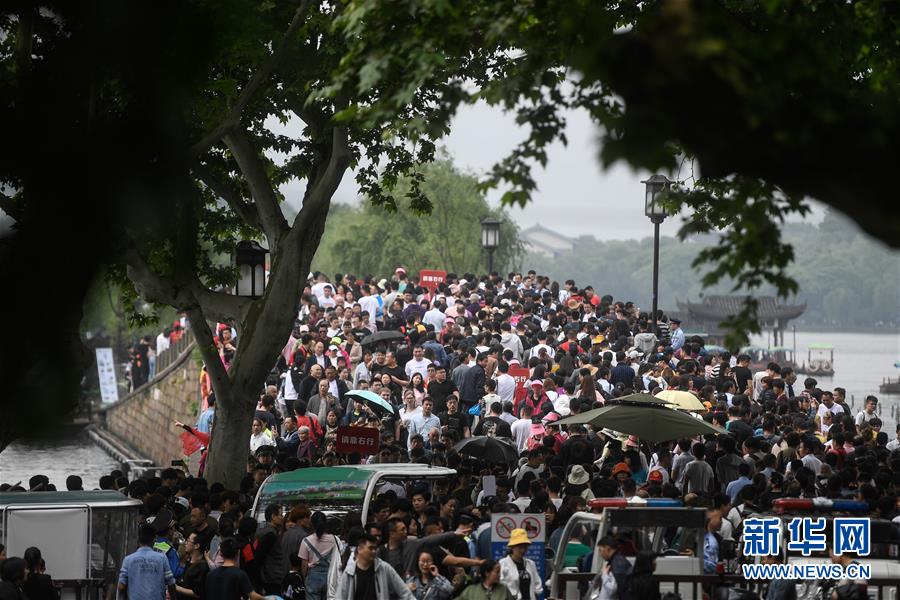 5月1日,杭州西湖风景区的断桥上人头攒动。 新华社记者 黄宗治 摄