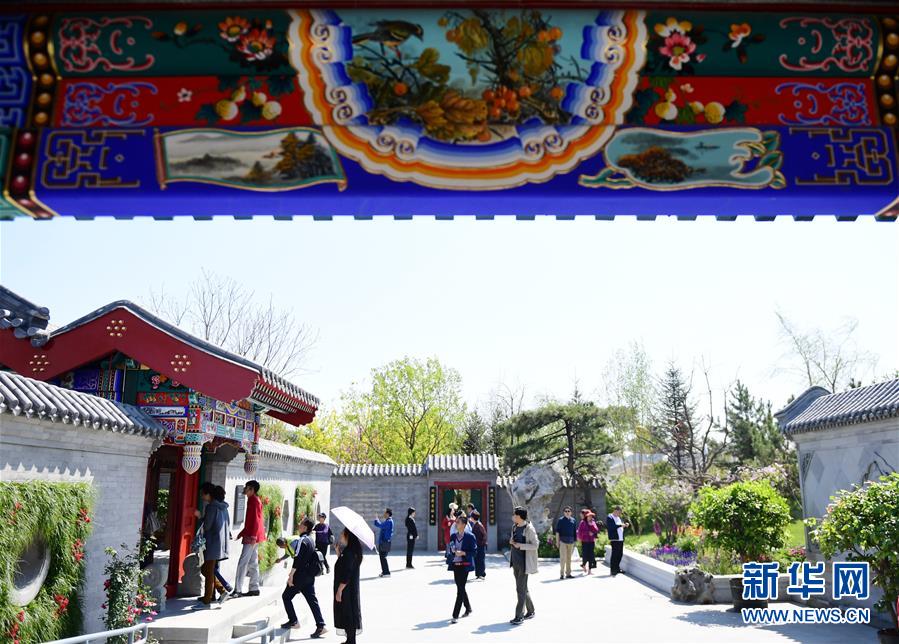 5月1日,游客在北京世园会北京园内参观。 当日,以“美丽北京 绽放世园”为主题的北京世园会“北京日”活动开幕,将于5月1日至3日举办近50场活动,重点展示北京生态文明建设成果、历史文化名城形象及现代国际大都市发展和对外交往成就。 新华社记者 张晨霖 摄